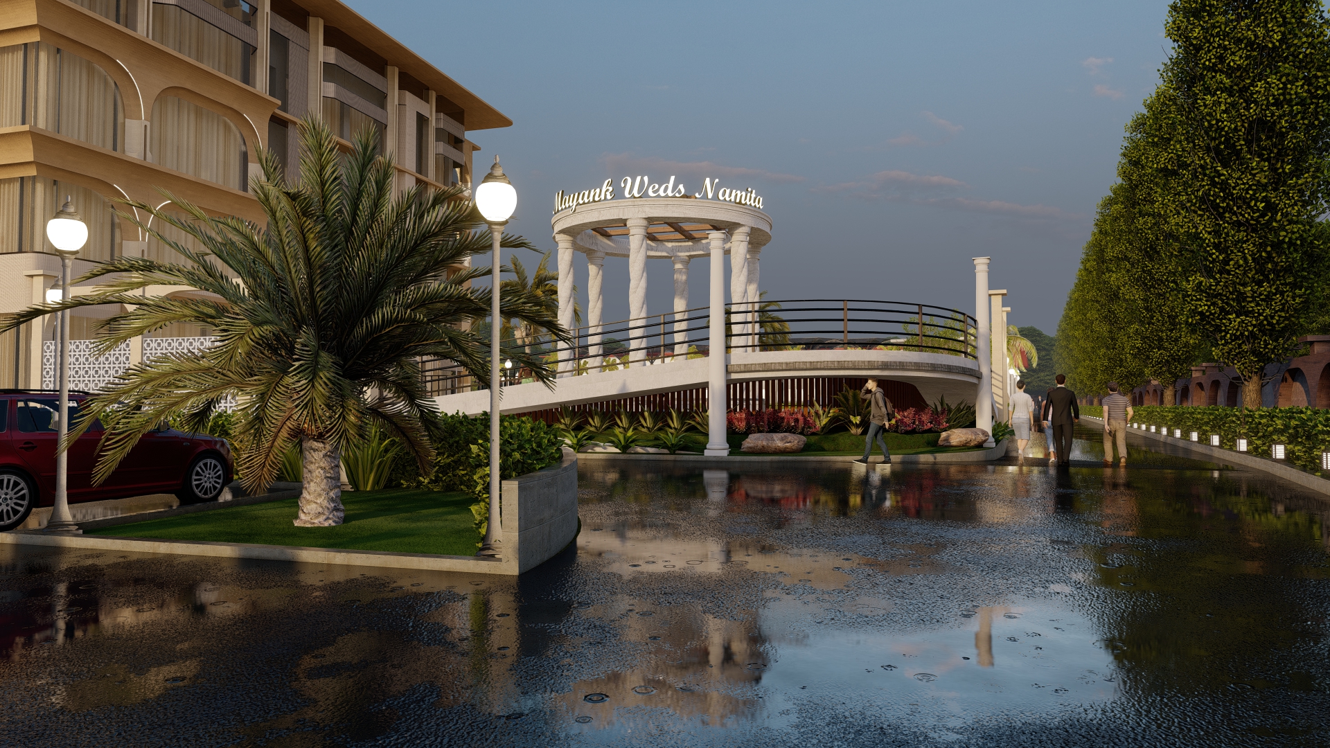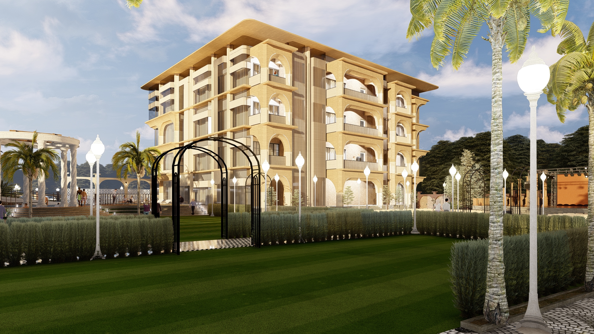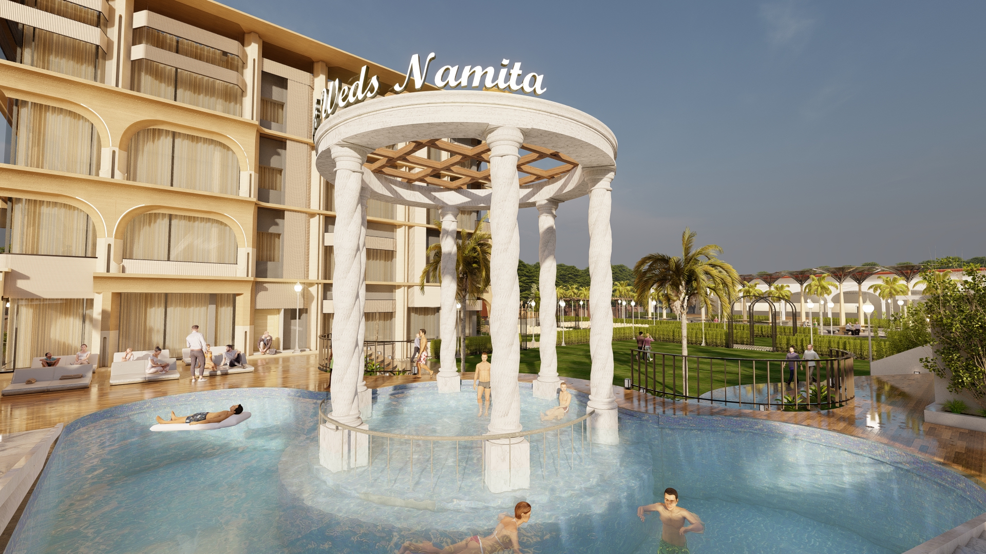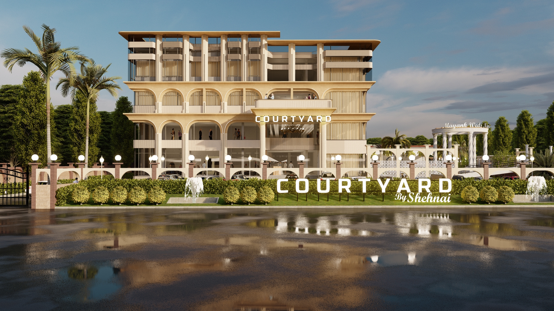 We took over this site at mid- construction stage where we redesigned the elevation and services and other amenities like swimming pool, lawn area, dining area, banquet and kitchen. Designing in a very contemporary manner we wanted this hotel to look elegant yet luxurious experimenting with different forms and color tones.